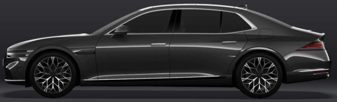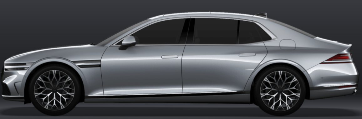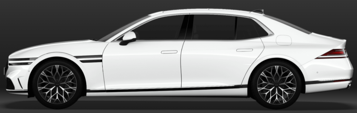 제네시스 G90은 총 10가지의 다양한 외장 컬러를 선택할 수 있으며, 위의 사진에 보이는 글로시 디자인으로는 우유니 화이트, 세빌 실버, 마칼루 그레이, 비크 블랙, 마우이 블랙, 한라산 그린, 카프리 블루, 태즈먼 블루 총 8가지 컬러로 구성되어 있습니다.