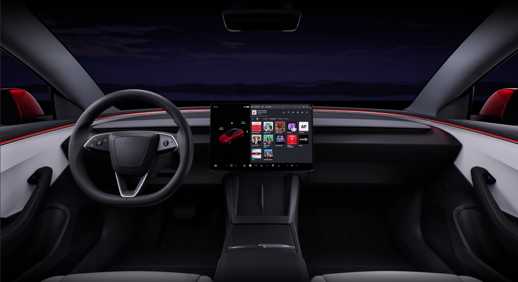 실내는 모던하고 간결한 분위기를 자랑합니다. 주요 제어 기능은 15인치 터치스크린을 통해 이루어지며, 물리적인 버튼이 거의 없다는 특징이 있습니다. 이로 인해 운전자는 직관적인 인터페이스로 차량을 제어할 수 있으며, 필요한 대부분의 기능을 터치스크린을 통해 설정할 수 있습니다.